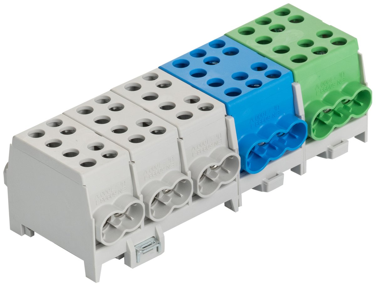 HLAK klemmer fra Pollmann med 2 skruer pr. indgang for optimal forbindelse. 3xGrå 1x35mm2/1x25mm2 indgang - 1x35mm2/1x25mm2 udgang. 1xBlå 1x35mm2/2x25mm2 indgang...