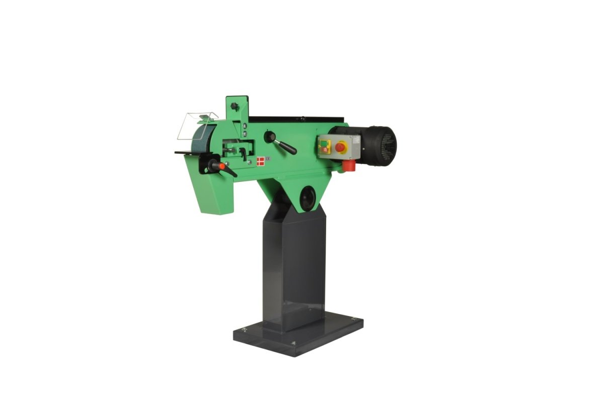 Effektiv kvalitetsbåndsliber med motorbremse, kipbart slibeplan og øjenværn. Optimal slibning i alle metaller. Lavt støjniveau og lukket konstruktion for udsugning.