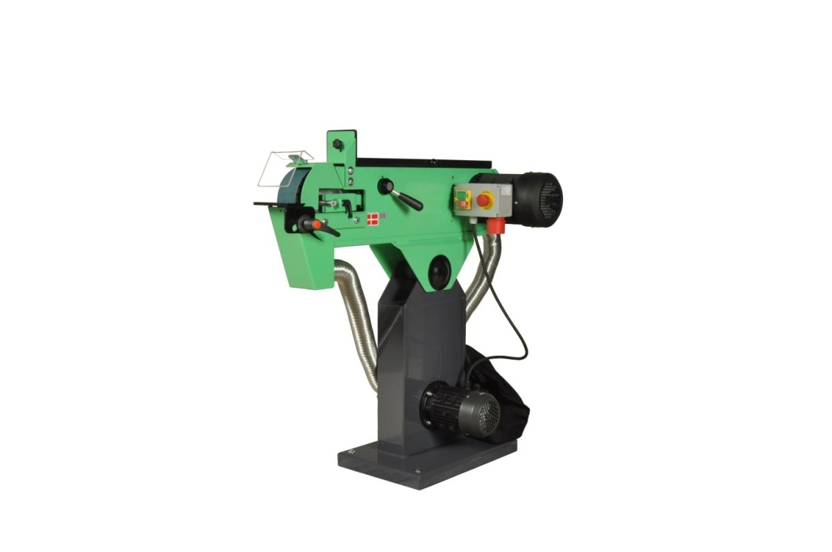 Effektiv båndslibemaskine TAS 75X konstrueret efter de strengeste miljø- og sikkerhedsbestemmelser. Med motorbremse, kipbart slibeplan, øjenværn og vinkelanslag.