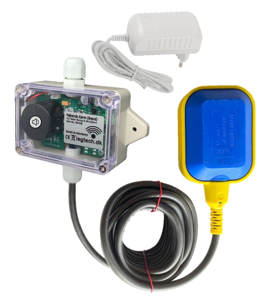 Denne højvandsalarm er en simpel og billig løsning til overvågning af vandstanden i brønde og septiktanke. Den giver dig besked via sirene og blink, hvis vandstanden bliver for høj.