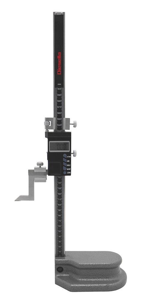 Digital højdemåler med ridsearm i hårdmetal. Omskifter mellem mm/tommer, +/- justering og finindstilling. Kompatibel med vippeindikatorer. Batteri medfølger.