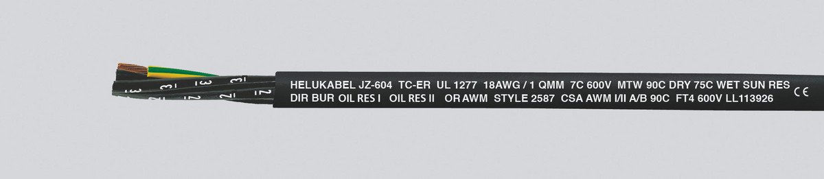 JZ-604 TC TRAY CABLE er et PVC multinorm kabel, der er designet til strømforsyning i åbne installationer i fabrikker og på maskiner.