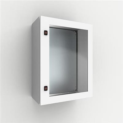 - 1,2 mm lakeret stål (1,5 mm for skabe med højde/bredde ≥ 500 mm; 2 mm for skabe med højde/bredde ≥ 800 mm)