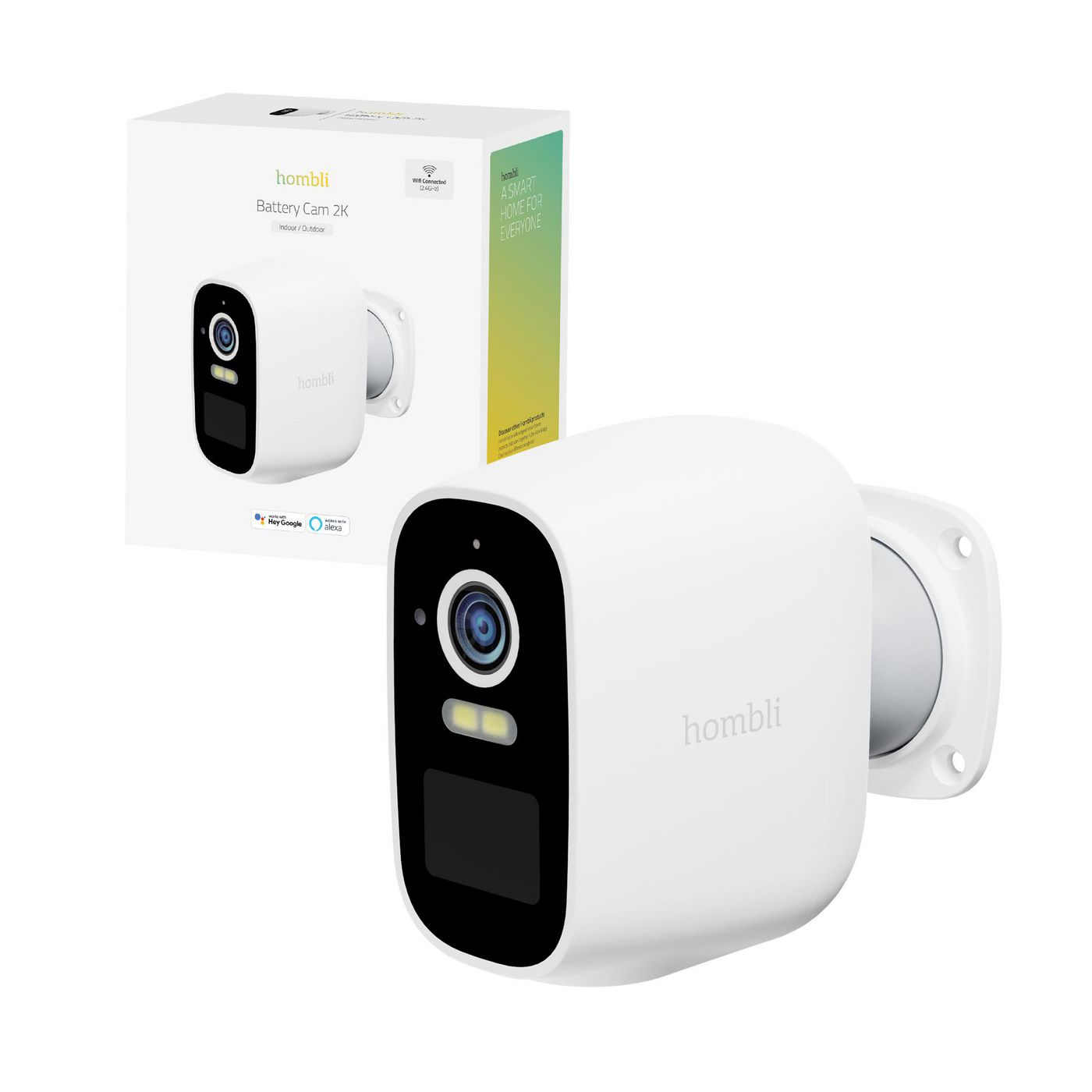 Tilslut Hombli Battery Cam til dit eksisterende smart home-system. Kameraet er baseret på Tuya og kompatibelt med Google Assistant og Alexa, hvilket gør det nemt at styre og overvåge med stemmekommandoer eller via den praktiske app. Works with Hey Google, Works with alexa, Works with Siri.