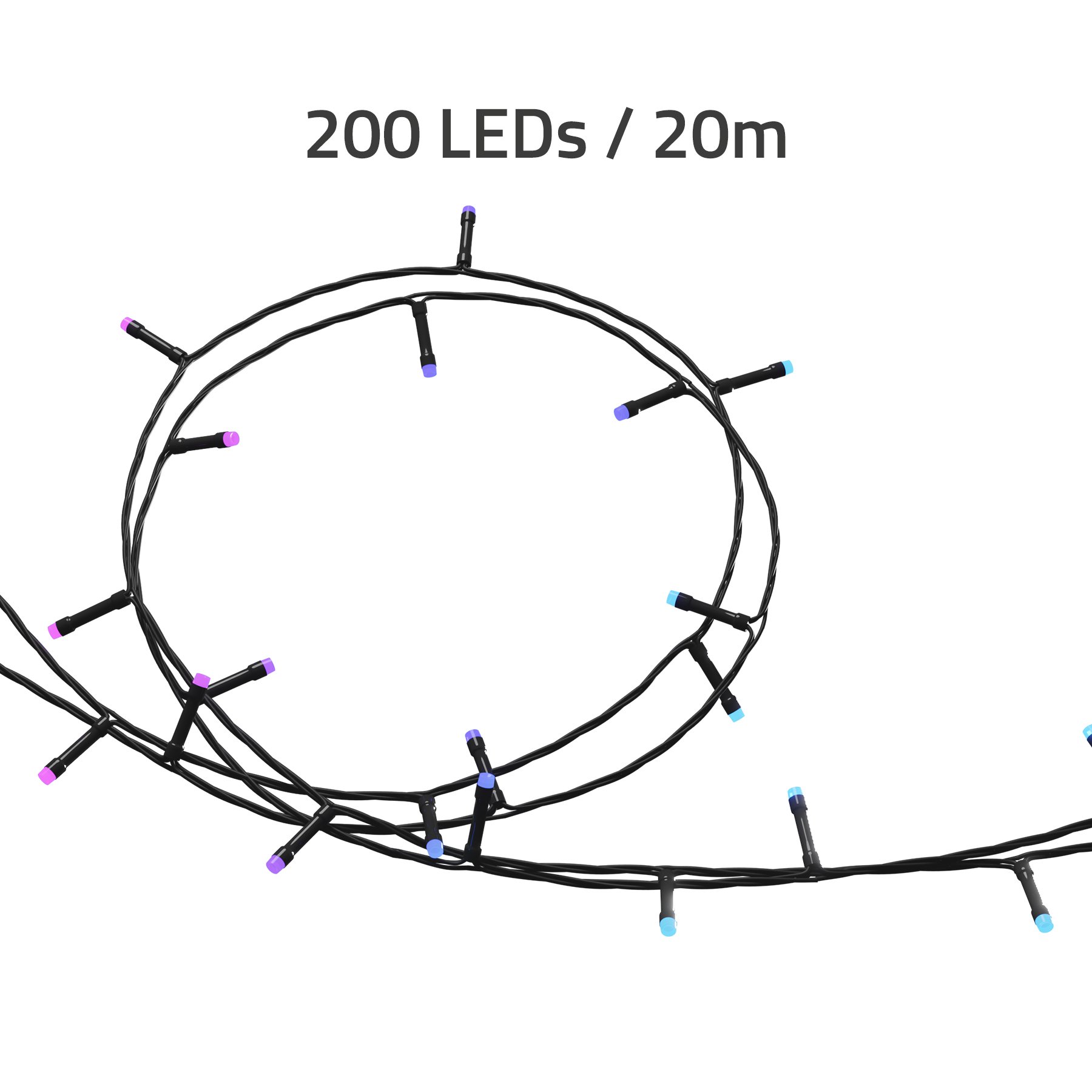 Med 200 LED-lys fordelt over 20 meter leverer disse lys imponerende 200 lumen klart, farverigt lys. De er energieffektive og bruger kun 12W.