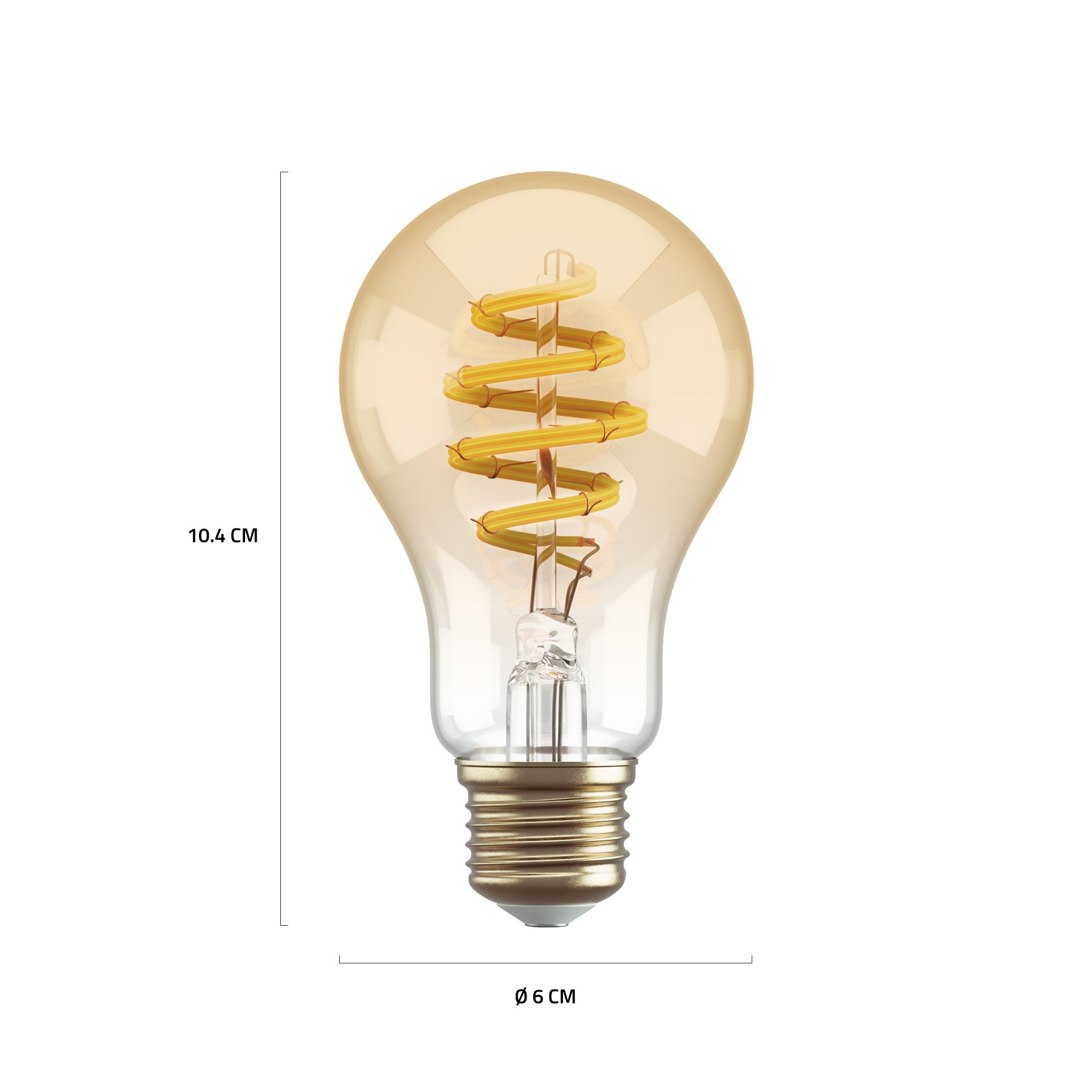 Smart filament pære med CCT, E27 fatning og A60-Amber design. Kompatibel med Google Assistant, Alexa og Siri.