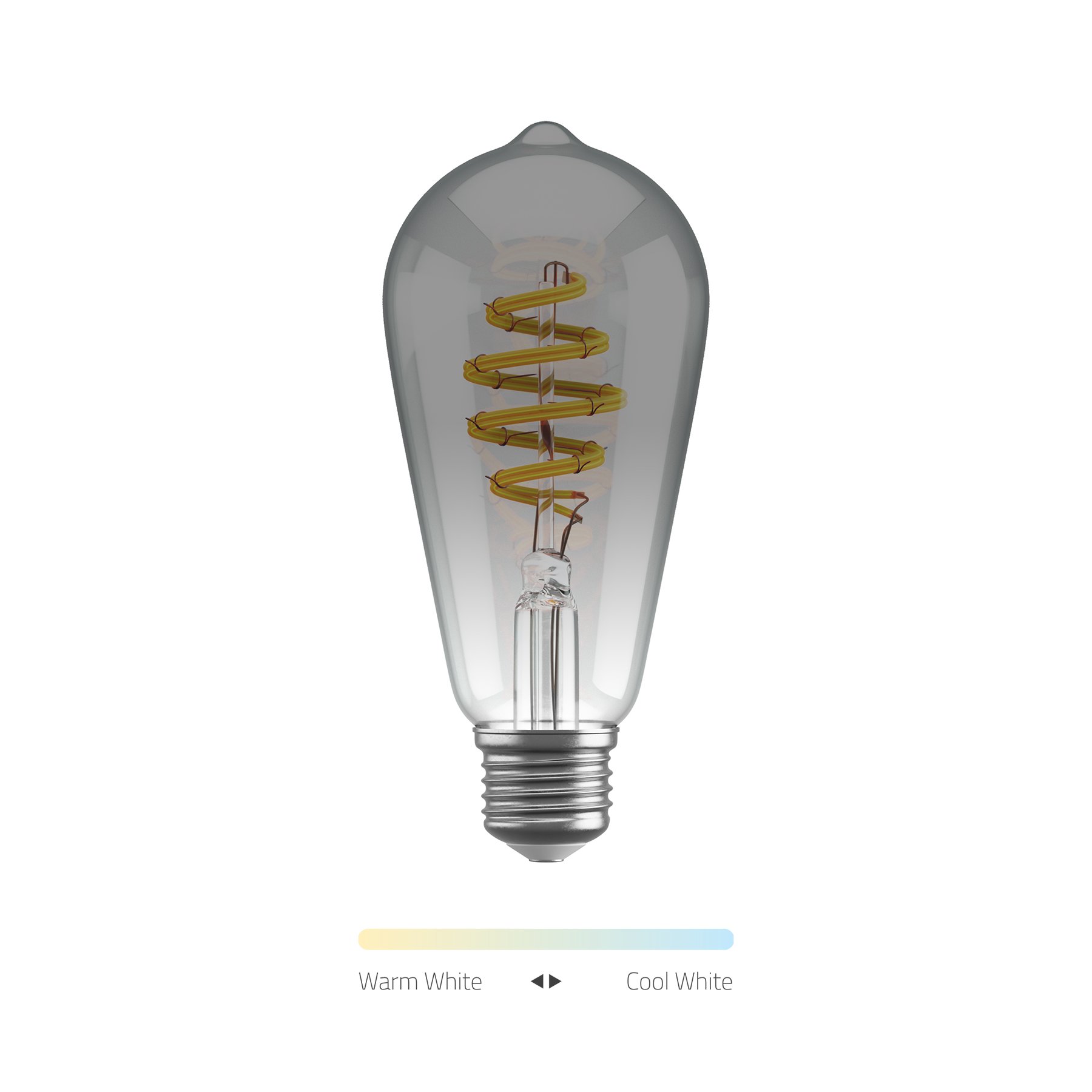 Smart filamentpære med justerbar farvetemperatur (CCT) og E27 sokkel. Kompatibel med Google Assistant, Alexa og Siri.