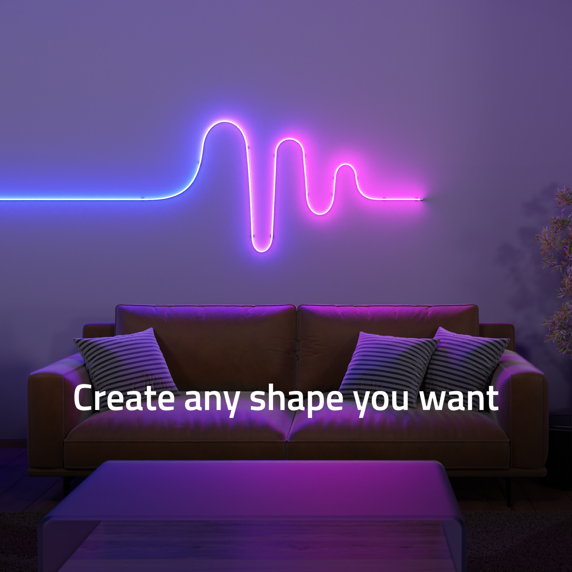 Form lys til at passe dit rum. Hombli Smart Neon Rope er yderst fleksibel, hvilket gør det nemt at skabe skarpe vinkler, kurver eller tilpassede former. Uanset om du vil fremhæve en hylde, vikle rundt om møbler eller line en sti, sikrer de medfølgende clips en sikker og problemfri installation.