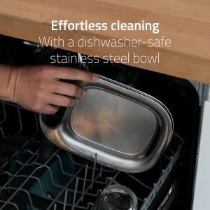 Stålskålen er opvaskemaskinesikker, og alle dele kan nemt skilles ad for grundig rengøring. Uanset om det er en hurtig skylning eller en dybdegående rengøring, gør dette smarte design vedligeholdelsen frisk og enkel.