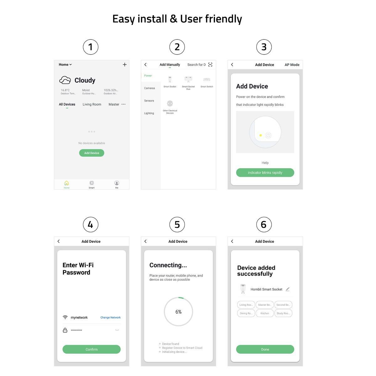 Hombli Smart Socket er udviklet i Holland og baseret på Tuya Smart IoT-platformen. Den er nem at installere og overholder GDPR samt de højeste sikkerhedsstandarder. Hombli beskytter dit privatliv, idet brugerdata kun er tilgængelige for dig og aldrig deles med tredjeparter. Hombli-appen er tilgængelig på flere sprog, herunder dansk.