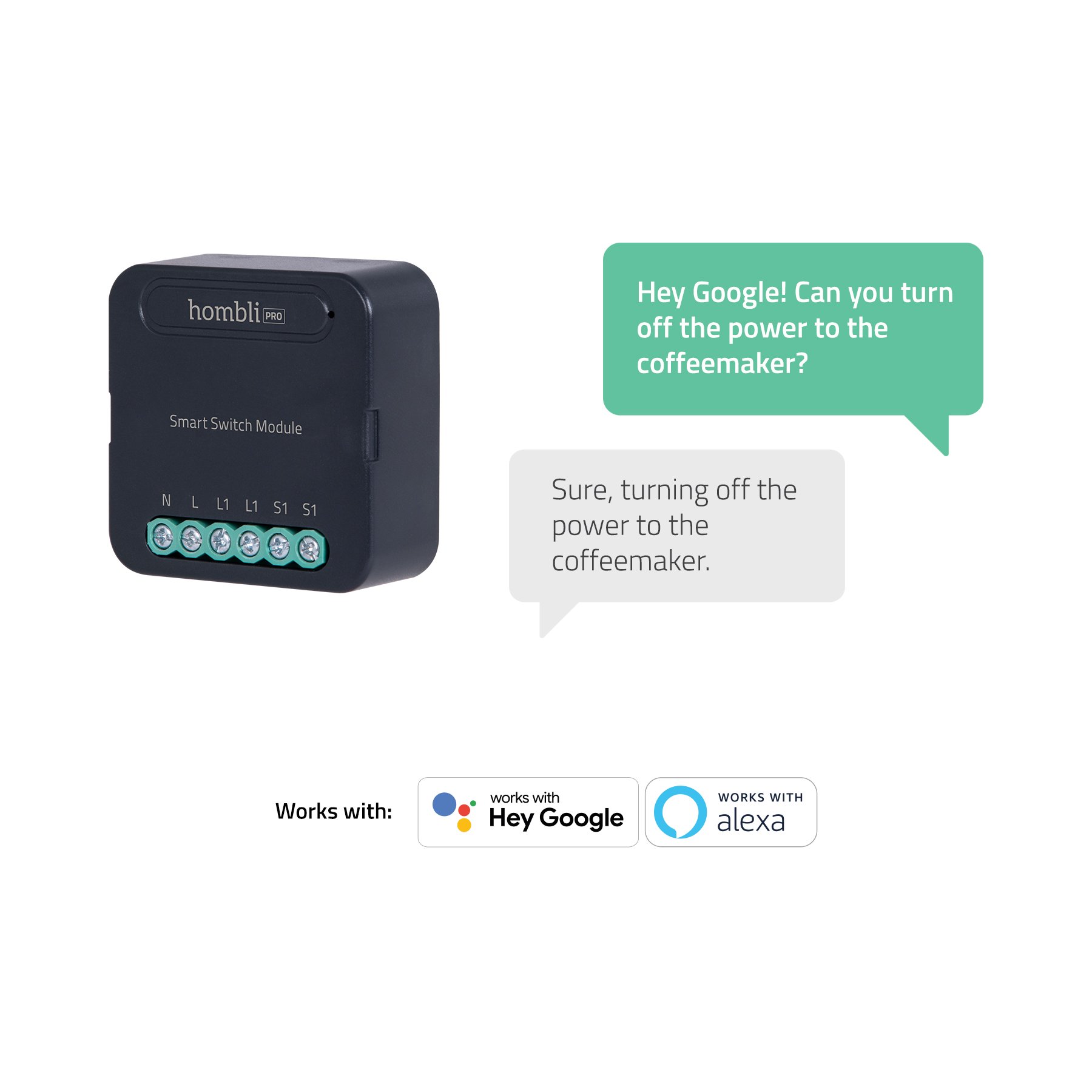 Hombli Smart Switch Module integrerer problemfrit med stemmeassistenter som Amazon Alexa og Google Assistant. Styr dine enheder med simple stemmekommandoer. Kombiner Hombli-modulet med andre Hombli smart home-enheder for at skabe avancerede scenarier, hvor flere enheder aktiveres samtidigt eller baseret på statusændringer. Modulet kan også kobles til andre mærker, der understøtter Tuya IoT-platformen.