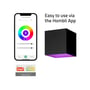 Med 16 millioner farver at vælge imellem kan du matche lyset til enhver lejlighed eller stemning. Lyset er desuden justerbart i lysstyrke, så du kan skabe den perfekte atmosfære indendørs ved at styre flere Hombli-lys. Lysblokken understøtter RGB + CCT lys og kan styres via Hombli-appen eller en stemmeassistent som Google Assistant, Amazon Alexa eller Siri Shortcuts.