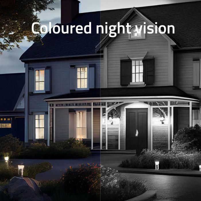 Kameraets avancerede farvede nattesyn giver sikkerhed og ro i sindet. Det tilbyder farvet billeddannelse og infrarødt syn op til 8 meter, så mørket ikke er en hindring.