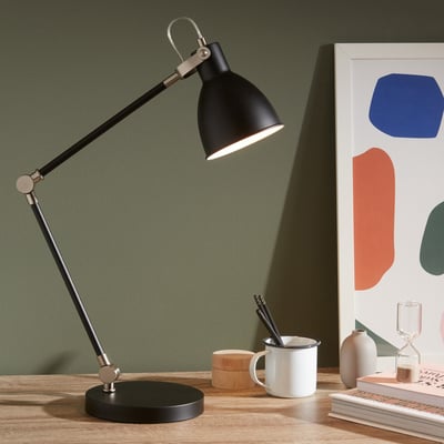Elegant HOUSE Bord 1L bordlampe i sort metal. Perfekt til indendørs brug med 2 meter ledning og afbryder på ledningen.
