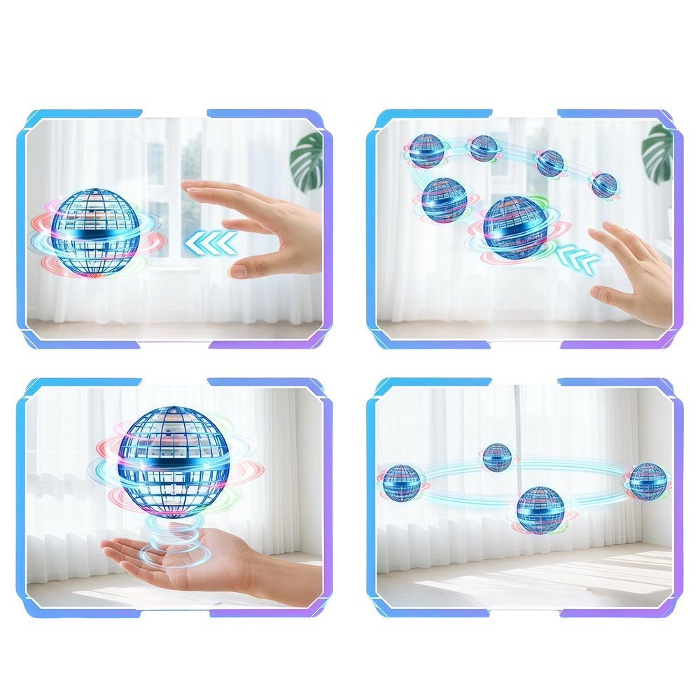 Denne flyvende bold er designet til at være let at styre og sjov at lege med. Dens kompakte størrelse gør den ideel til indendørs brug, og det farverige lys gør den til et visuelt spændende legetøj.
