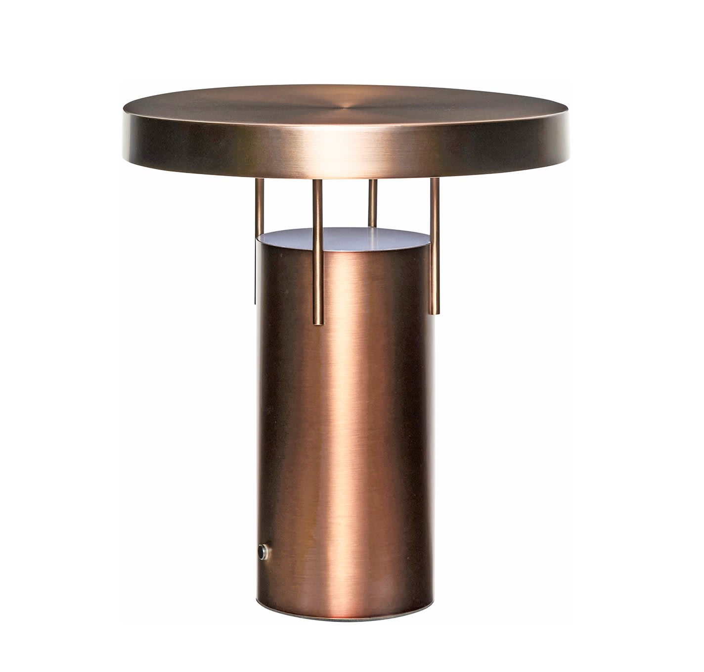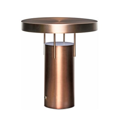 Elegant og praktisk bordlampe fra Hübsch i bruneret messing. Perfekt til indendørs brug med indbygget genopladeligt batteri og USB-strømudtag. Læs mere…