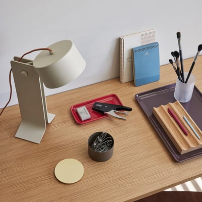 Elegant Hübsch Crea bordlampe i sandfarve. Perfekt til indendørs brug med dæmpbar funktion og inkluderet lyskilde.