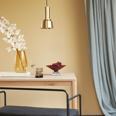 Elegant Hübsch Mono pendel i messingfarve. Perfekt til indendørs brug og skaber en hyggelig atmosfære. Dæmpbar og stilfuld.
