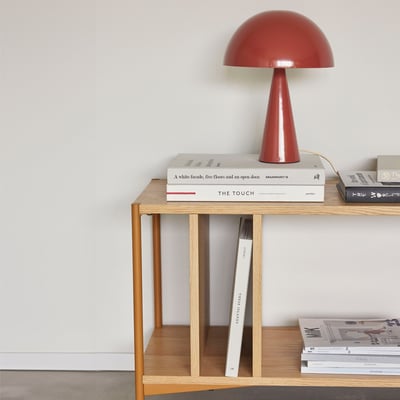 Mini bordlampe fra Hübsch i rød metal. Lampen er udstyret med en 2 meter ledning med afbryder. Ekskl. lyskilde.