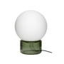 Elegant Hübsch Sphere bordlampe i grøn glas med detaljer i nikkel. Perfekt til indendørs brug.