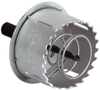 Hærdet hulsav og hulfræser til Kaiser dåser. Ideel til montering i fibergips og MDF. Hulfræseren undersænker.