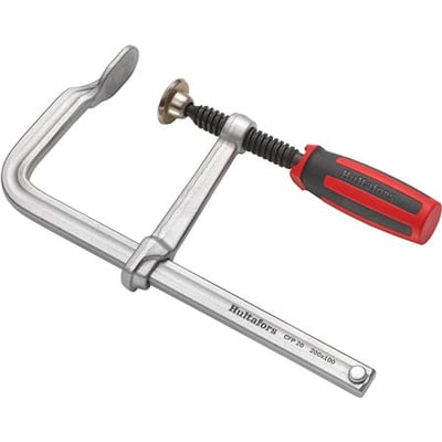 Helsmedet skruetvinge CFP fra Hultafors med pivothåndtag og forzinket stålprofilskinne. Det smalle design sikrer let adgang, selv hvor pladsen er trang.