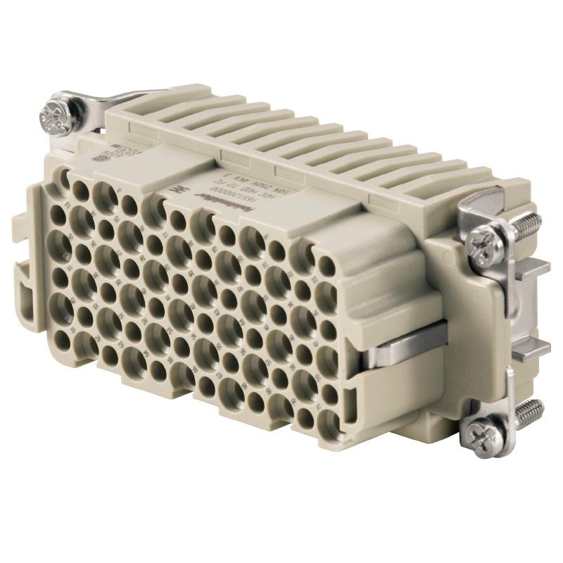 Industriel indsats med 72 poler og crimp-tilslutning. Består af kontaktelement og isolerende kappe.