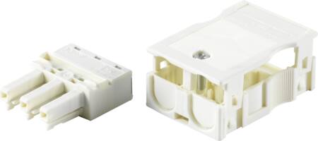 Færdigkonfektioneret hunstik med trækaflastningskappe, der gør det nemt for elektrikere at "klikke" kabler sammen. Velegnet til gulv- og vægkanaler.
