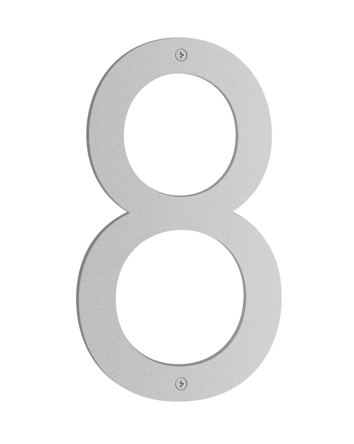 Nordic husnummer 8 i mat grå, 230 mm høj. Komplet sæt klar til montering.