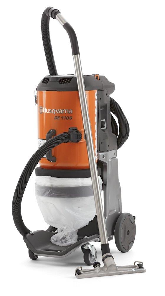 Husqvarna DE 110 S er en alsidig og kraftfuld støvsuger, der er klassificeret til H-klasse. Den er designet til at være kompakt og let at transportere, hvilket gør den ideel til brug på forskellige arbejdssteder.
