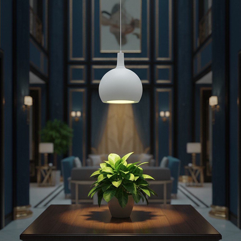 Denne elegante pendellampe med E27-fatning er et stilfuldt valg til ethvert rum. Lampen kombinerer holdbart metal med en smuk keramikskærm og har en diameter på 28 cm. Den hvide finish giver et rent og moderne udtryk, der passer ind i de fleste indretningsstile.