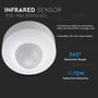 Denne loftsensor er designet til effektiv bevægelsesdetektering i indendørs miljøer. Sensoren anvender PIR infrarød teknologi til at registrere bevægelse og kan håndtere en maksimal belastning på 300W.