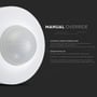 Med sin IP20-klassifikation er sensoren egnet til brug i tørre indendørs omgivelser. Den hvide finish sikrer en diskret integration i de fleste loftsmiljøer. Sensoren tilbyder desuden manuel overstyring, hvilket giver øget fleksibilitet i styringen af tilsluttet belysning eller andet udstyr.