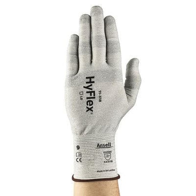 HyFlex® 11-318 sikkerhedshandsker med ultralet 18-gauge design for øget fingerfærdighed og touchscreen-kompatibilitet. Silikonefri og med Dyneema® Diamond Technology for skærebeskyttelse.