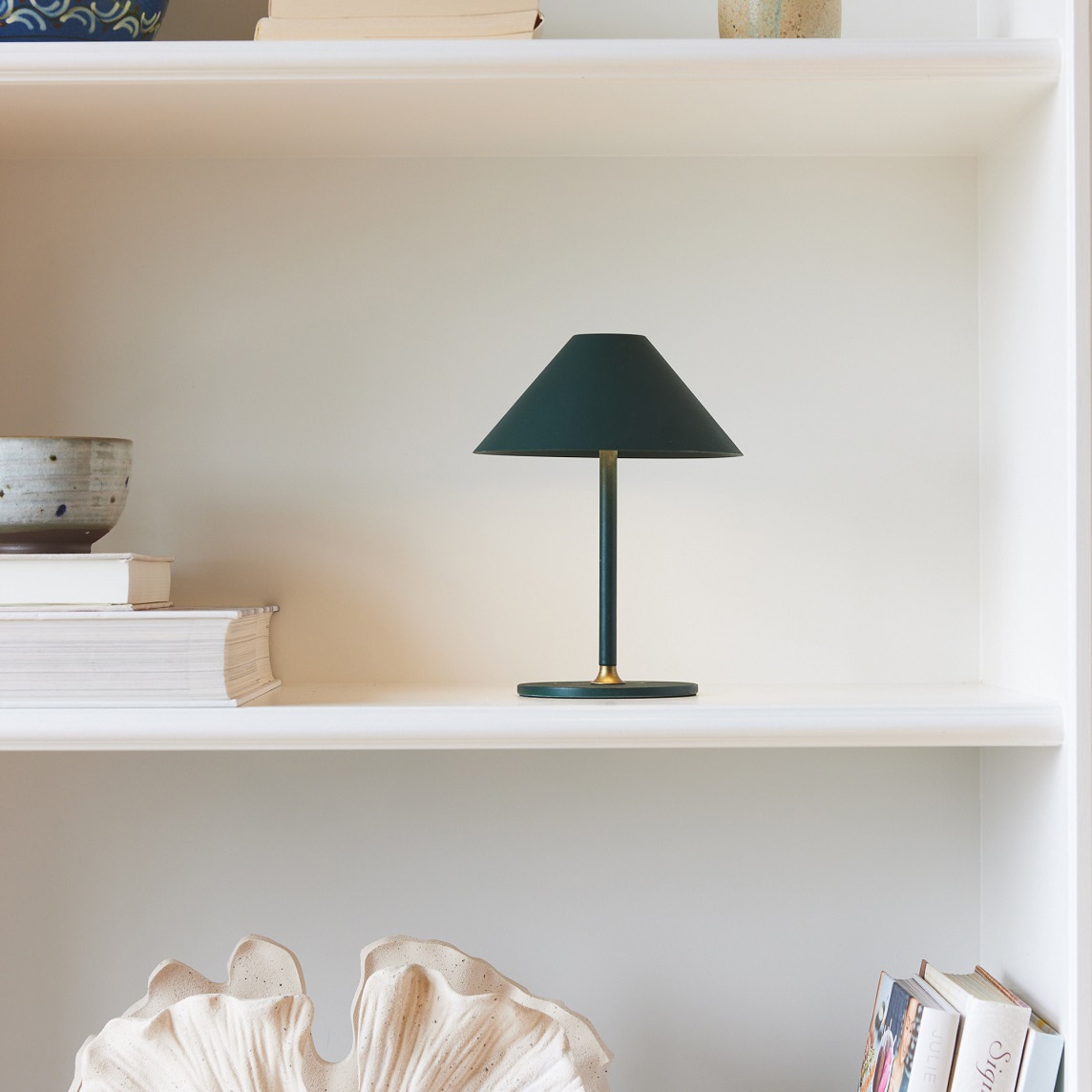 Hygge bordlampen kommer i fem farver - alle med en smuk messingdetalje. Fuldt opladet kan den lyse i 5-7 timer.