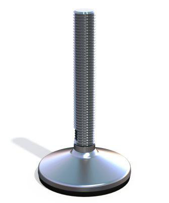 Hygiejnisk maskinsko med en totalhøjde på 136 mm, justering på 97 mm og en nominel belastning på 22.000 N. Spindelstørrelse: M 16-2.0. Fodplade-diameter: Ø 105 mm.