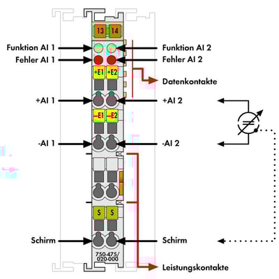 I/O 2AI 0-5A AC/DC differential med 0-5 A AC/DC differentialindgang.