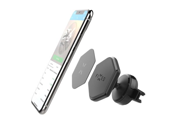 Magnetisk telefonholder til montering i ventilationsgaller. Nem og sikker fastgørelse af din telefon under kørsel.
