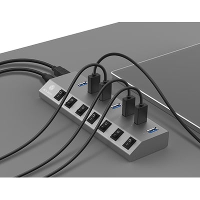 Denne 7-ports USB 3.0 hub er den ideelle løsning til at udvide dine tilslutningsmuligheder. Med den kan du nemt tilslutte flere enheder til din computer eller laptop.
