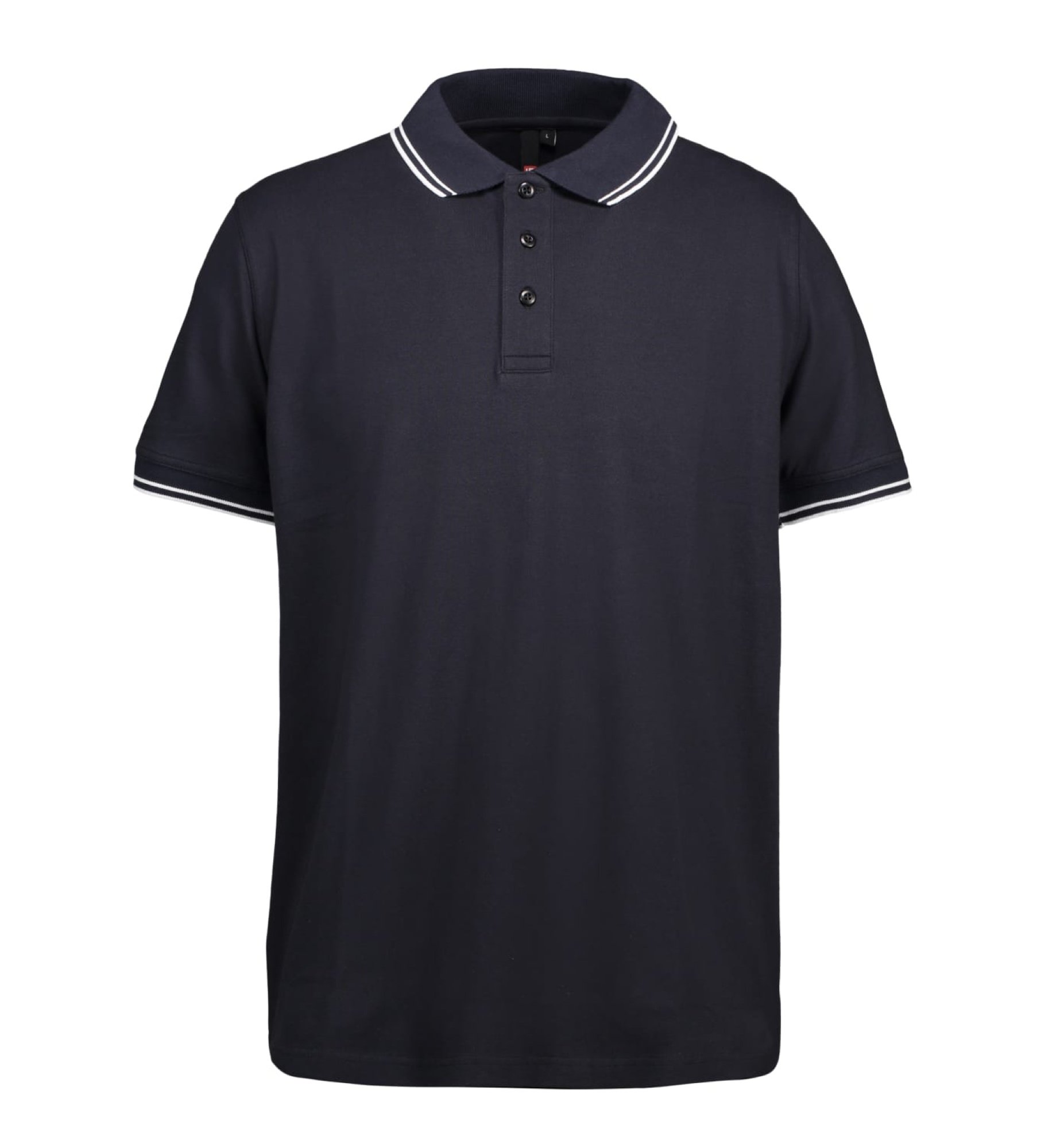 Klassisk poloshirt i piquékvalitet med stretch. Nakkebånd, nakkespejl og stolpe med tone i tone-knapper. Kontraststrib på ærmer og krave.
