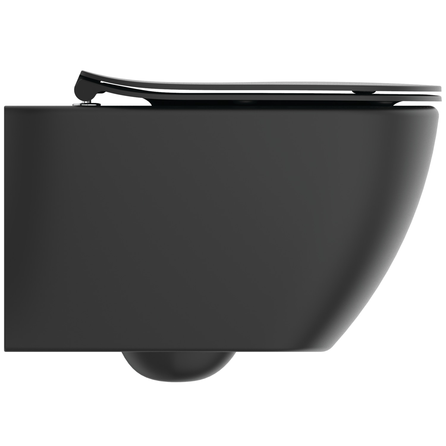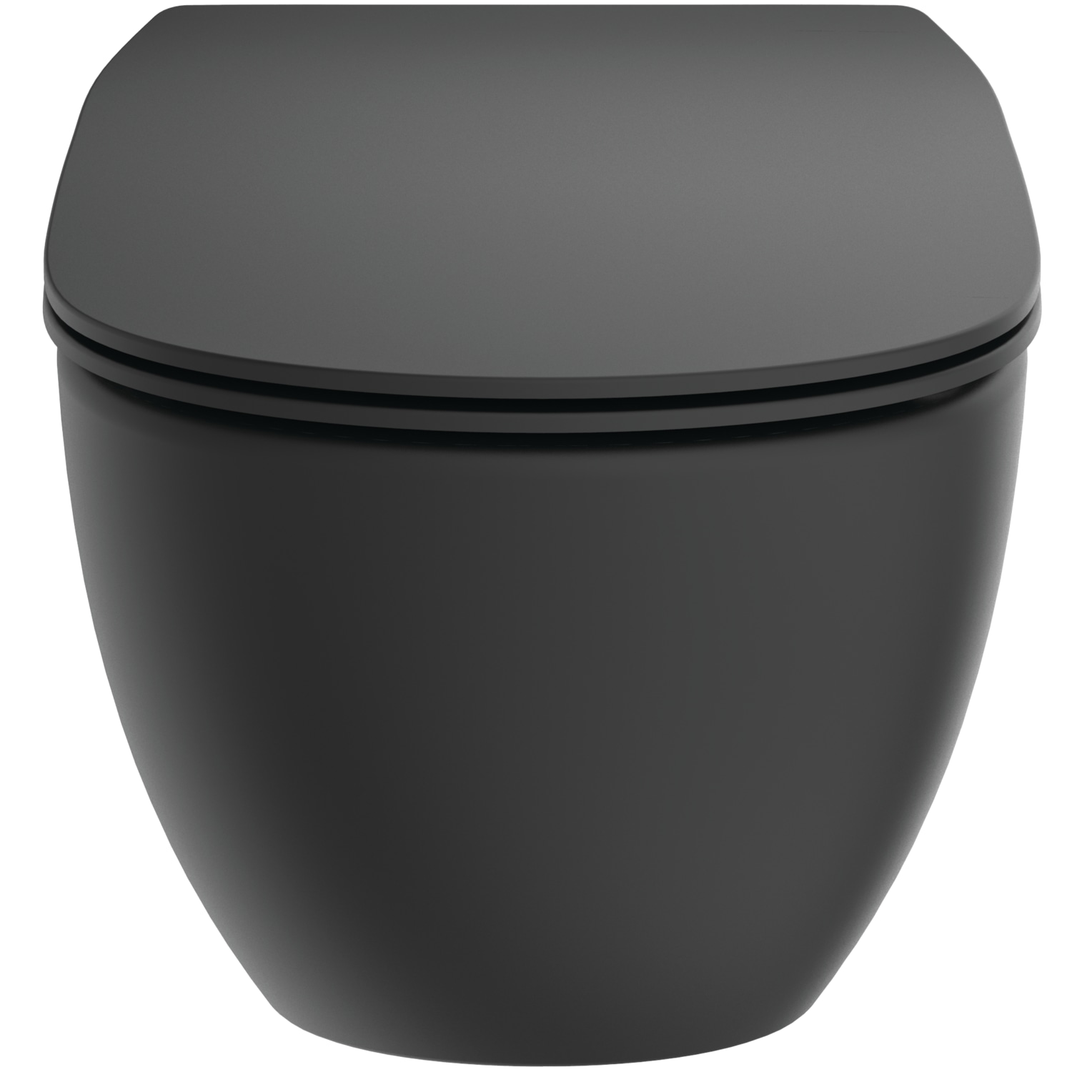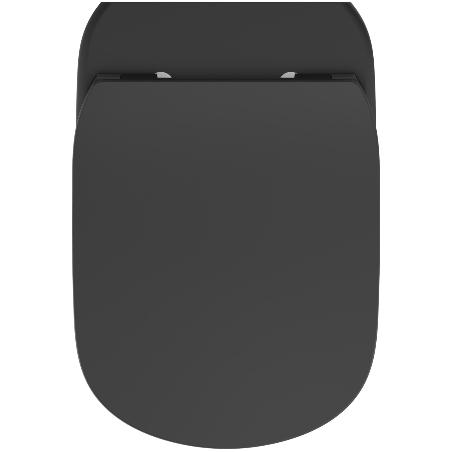 Ideal Standard væghængt toilet i sort. Mål: 365x535x380 mm. Med skjult montering og toiletsæde.