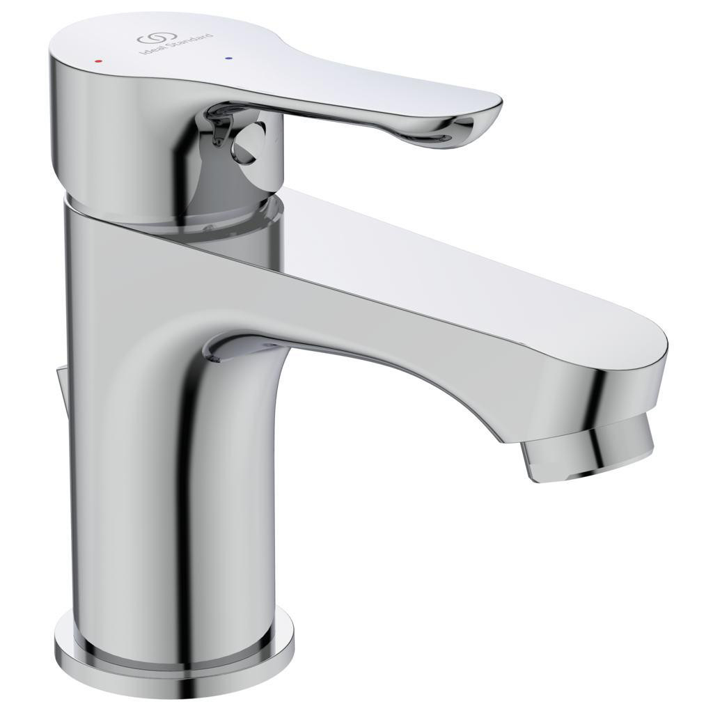 Ideal Standard Alpha håndvaskarmatur i krom med 1-grebs betjening, bundventil, keramisk kartouche, temperaturbegrænsning og spareperlator.