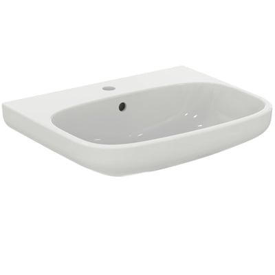 Hvid Ideal Standard i.life A håndvask, 60 cm med centreret hanehul og overløb. Dimensioner: 600x480x150 mm.