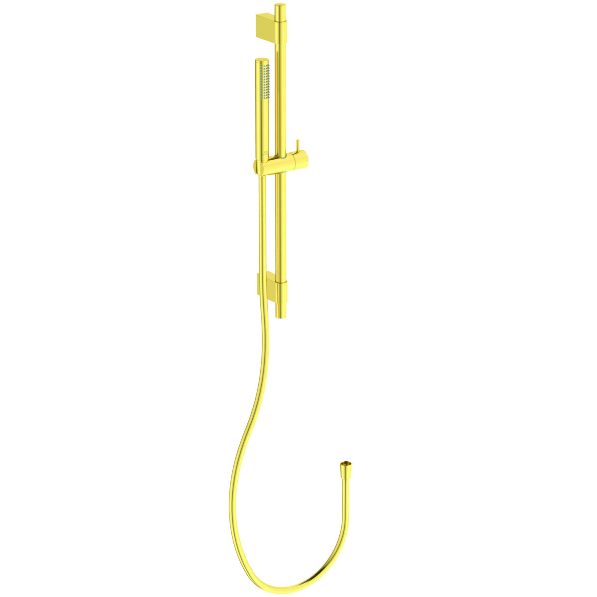 Ideal Standard Idealrain Pro brusersæt i brushed gold. Med antikalkdyser, vandbegrænser (8 l/min) og 1750 mm IdealFlex slange.