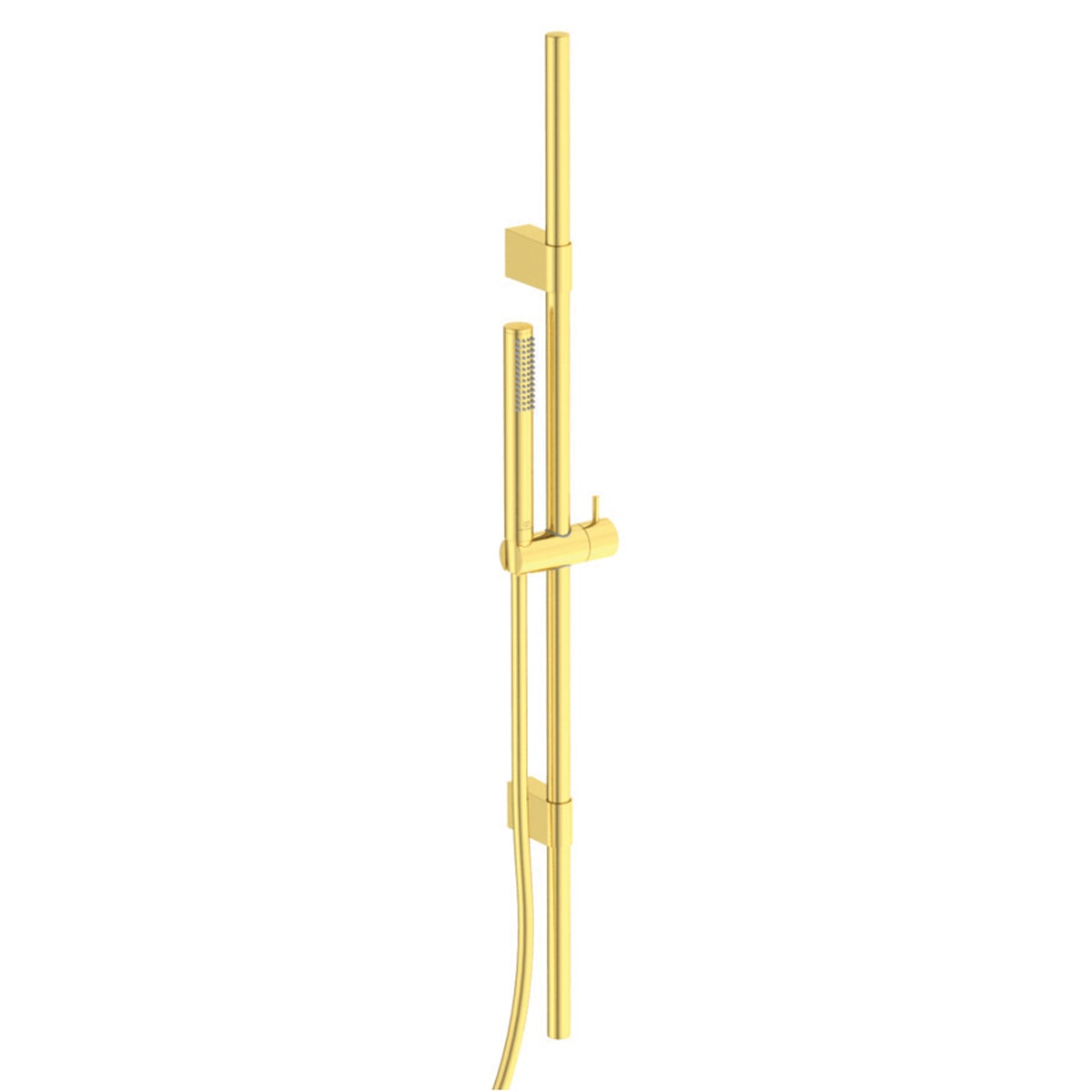 Ideal Standard Idealrain Pro brusersæt i brushed gold med Ø25 mm hoved, 1 stråle, antikalkdyser, vandbegrænser (8 l/min) og 1750 mm slange.