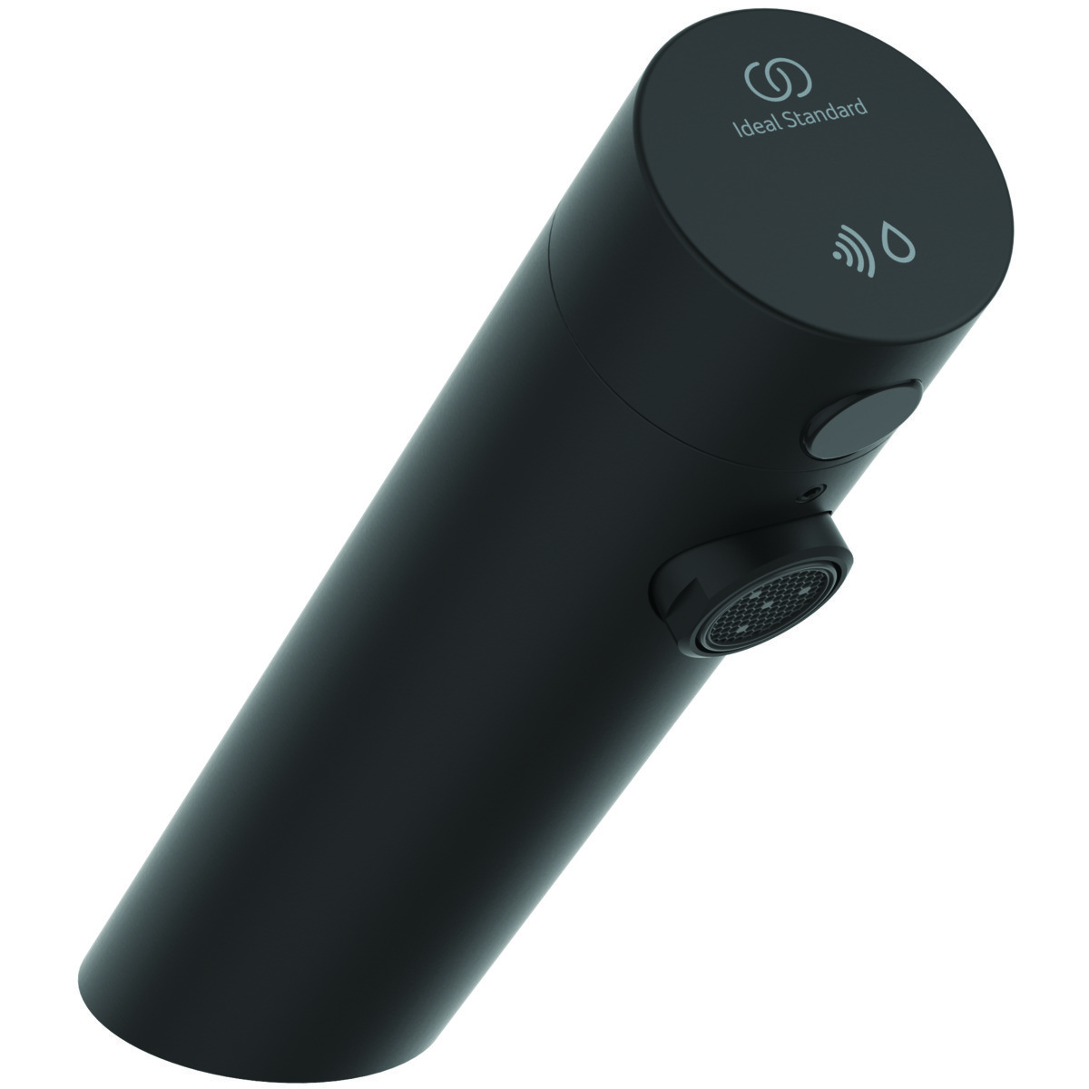Ideal Standard Sensorflow håndvaskarmatur i silk black. Elektronisk 6V sensor, uden blander til kold eller forblandet vand. Med 5 l/min laminarstråle.