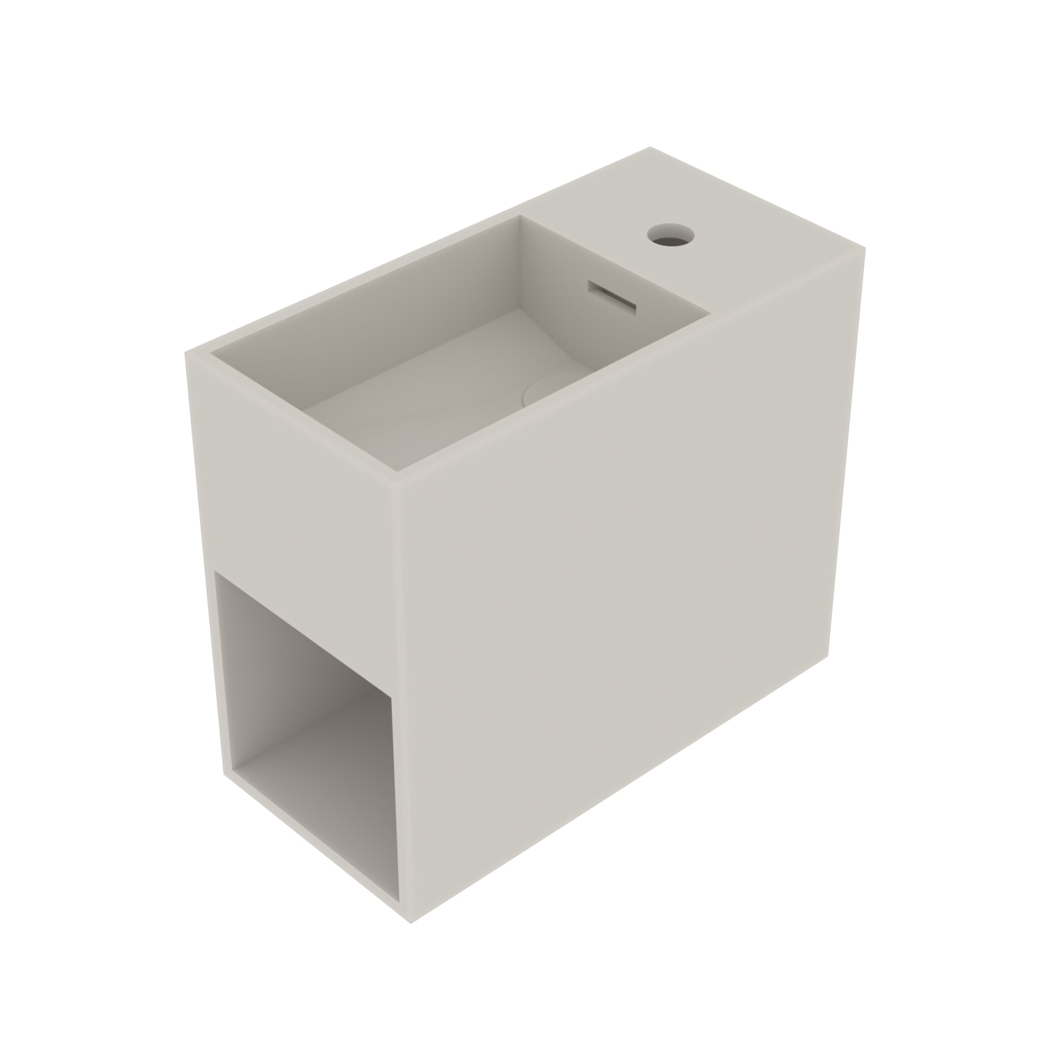 Denne firkantede håndvask fra Ideavit er fremstillet i slidstærkt mineral komposit, hvilket sikrer en lang levetid og en rengøringsvenlig overflade. Med sine kompakte mål på 45x22 cm er den ideel til mindre badeværelser eller gæstetoiletter.