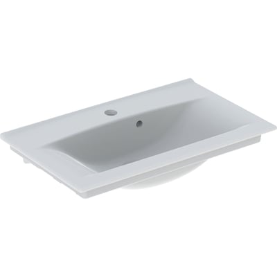 Elegant håndvask fra Ifö med armaturhul i midten, overløb og praktisk fralægningsplads.