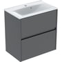 Ifö Sense Modern sæt håndvask til montering på underskab med underskab, smal kant, to skuffer, kompakt. Måler 615 mm i bredden og 618 mm i højden. Håndvasken er hvid, mens korpus og front er i lava med en lakeret silkemat finish.