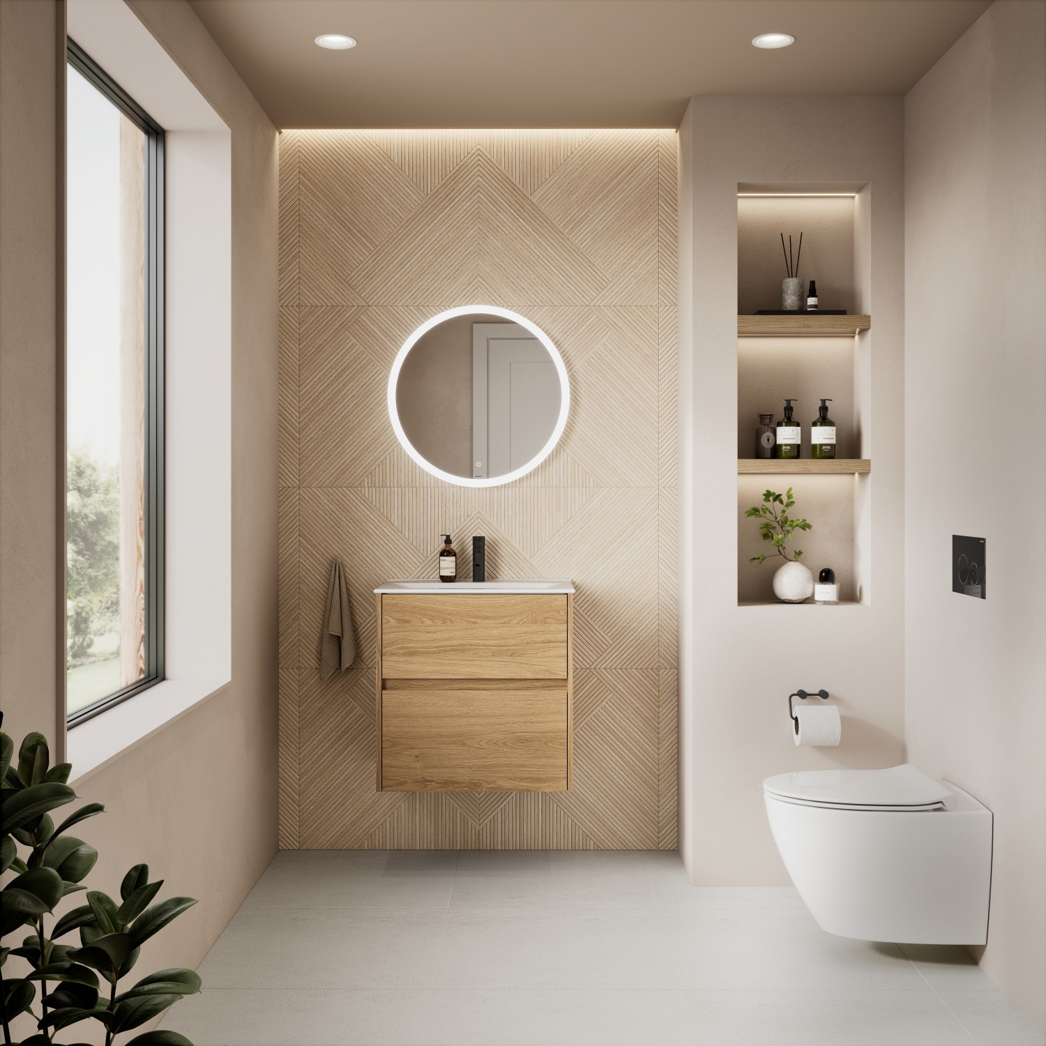 - Fugtbestandige materialer, der sikrer holdbarhed i badeværelsesmiljøer.